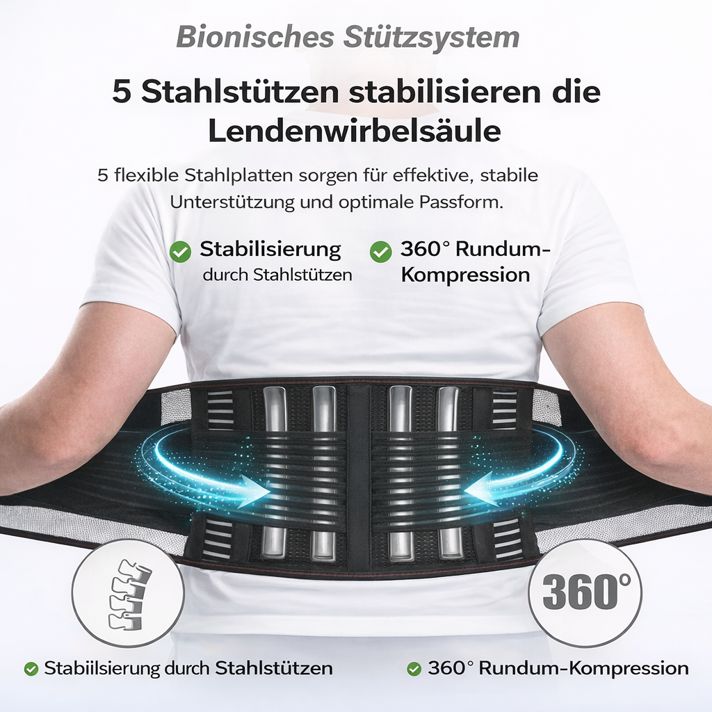 • Stabilisiert die Körpermitte – Das bionische Stützsystem unterstützt deine Haltung und hilft, Überlastung im Alltag vorzubeugen.